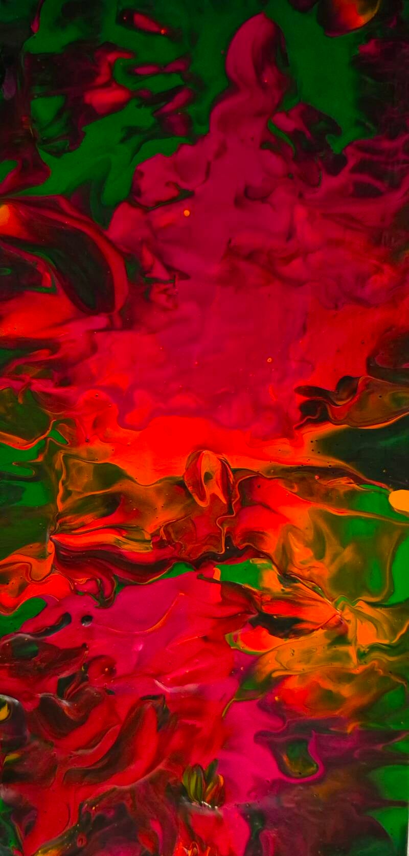 Vibrant hues of orange and yellow magenta black and dark green elegantly intertwine, creating a dynamic visual experience across the canvas. For $25.00
