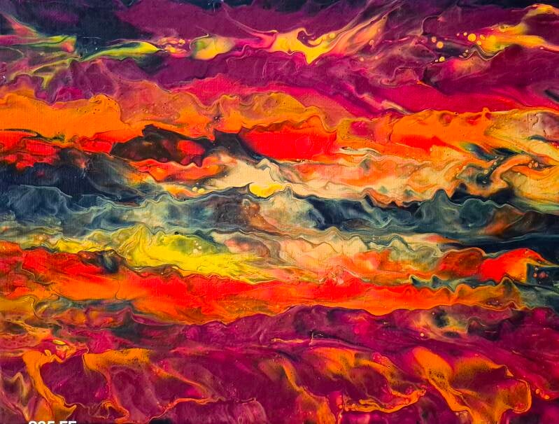 It has pink, sandy color, orange, black with blurred highlights of yellow and gold. This vibrant palette evokes a sense of warmth and tranquility, making it perfect for creating an inviting atmosphere. The interplay of colors not only adds depth but also sparks creativity and inspiration. It would look good in any space or room selling it for $25.00